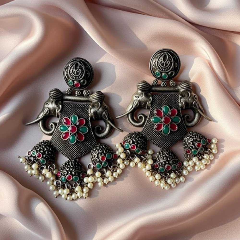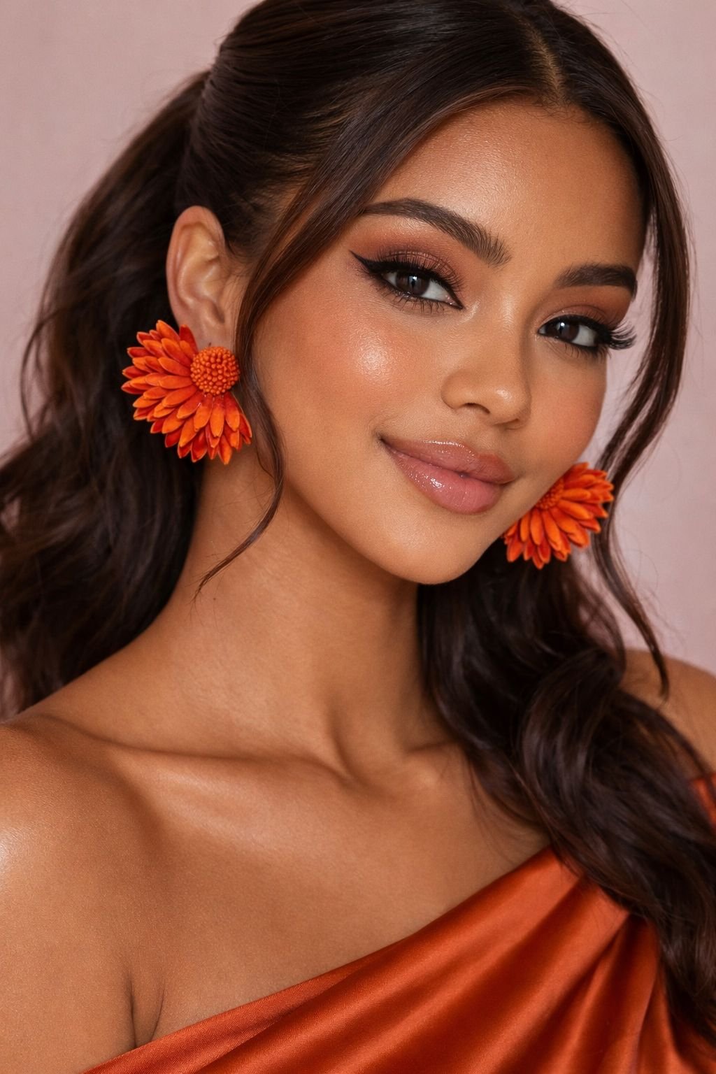 Ivory Peach Natural Pearl Cascade Tassel Earrings