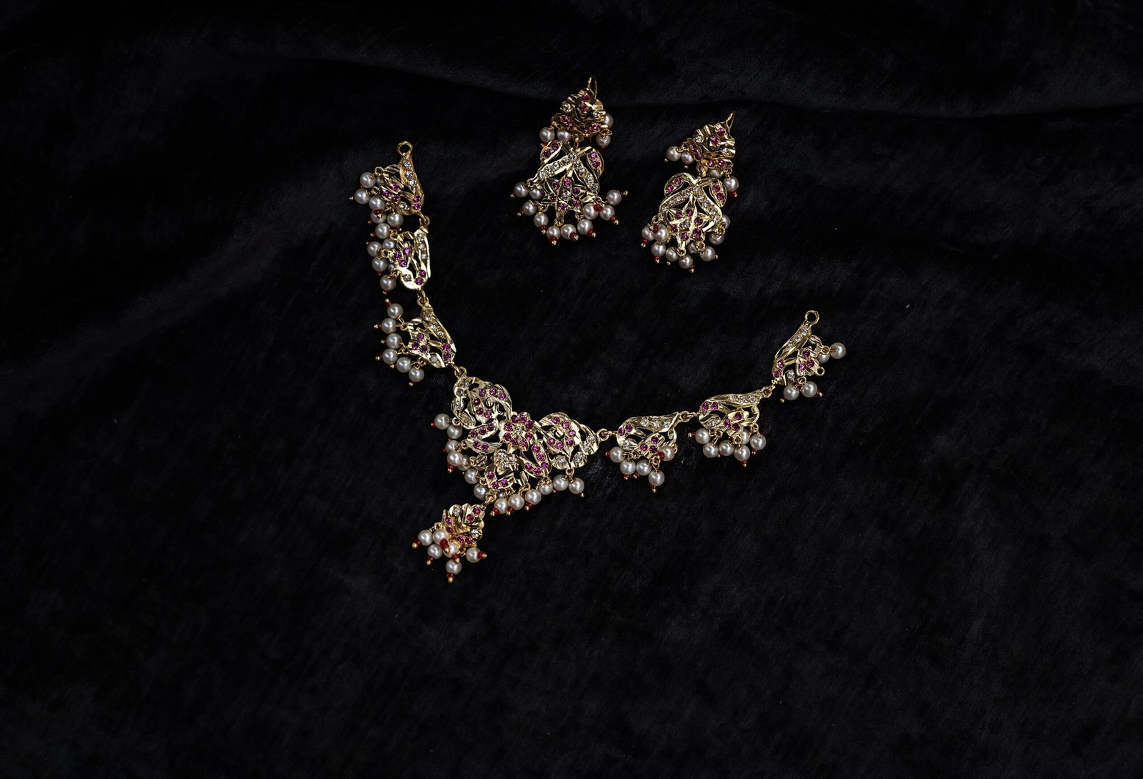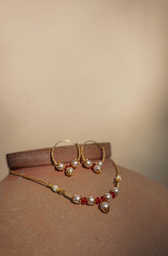 Himachali Pearl & Red Bead Chandrahaar Mala Set – 1 Gram Gold Polish