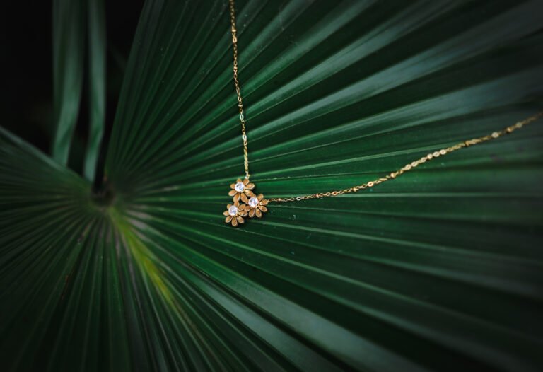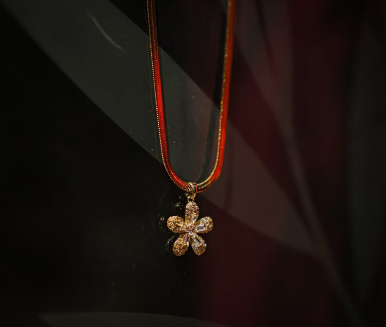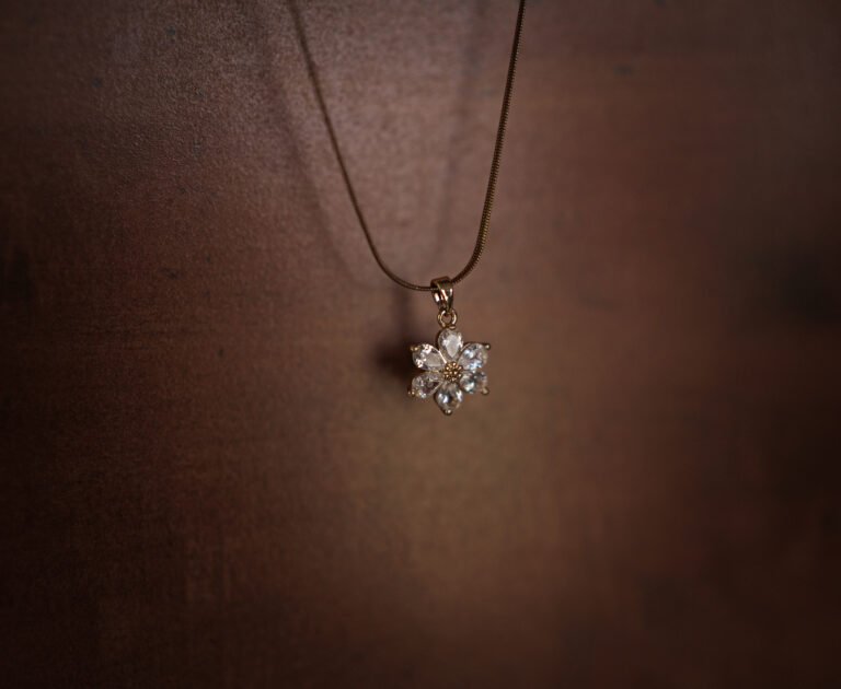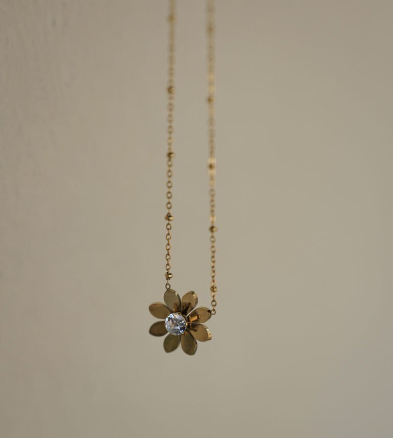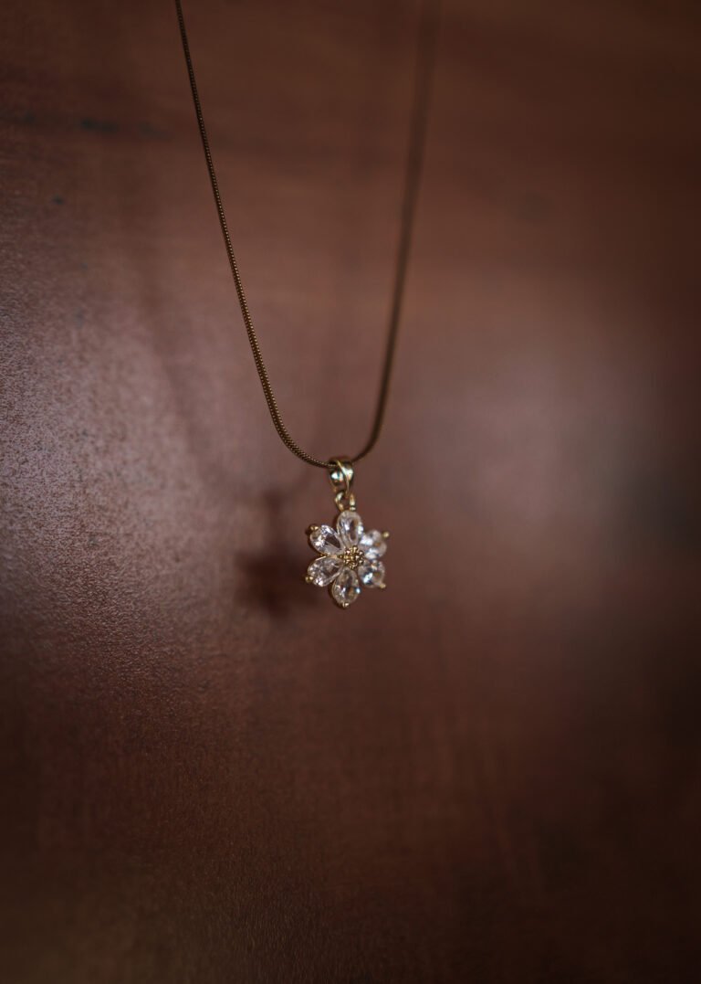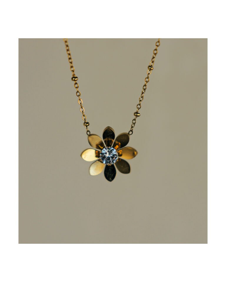Flower 18k Gold Diamond Style Pendant Chain