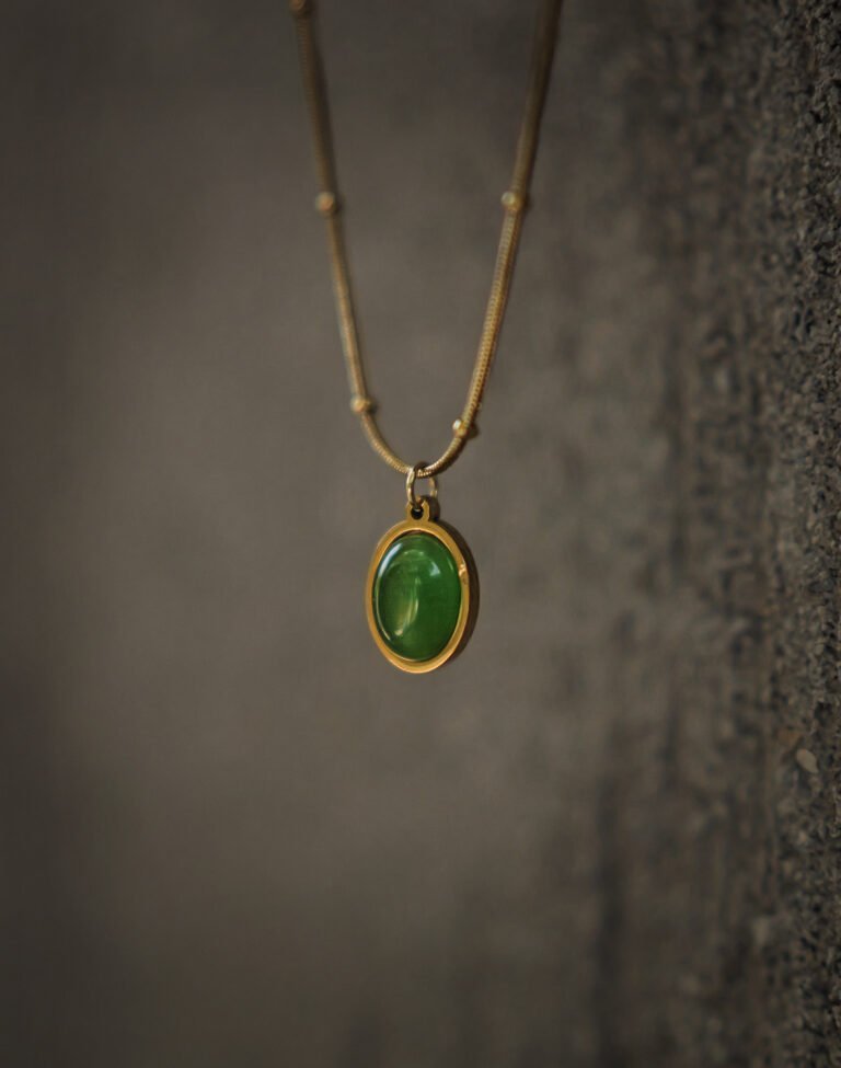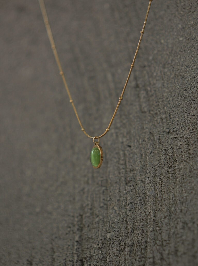 Green Stone Oval Pendant Chain