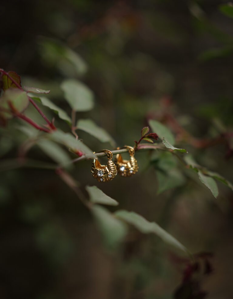 18K Gold Stone Hoop Earrings