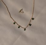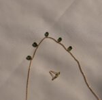 Elegant and refreshing, this 18K Gold Green Stone Studded Chain with Stud Earrings set is designed to add a subtle pop of color to your look. The delicate chain is adorned with green stone detailing, perfectly paired with matching minimal studs for a coordinated and graceful style.