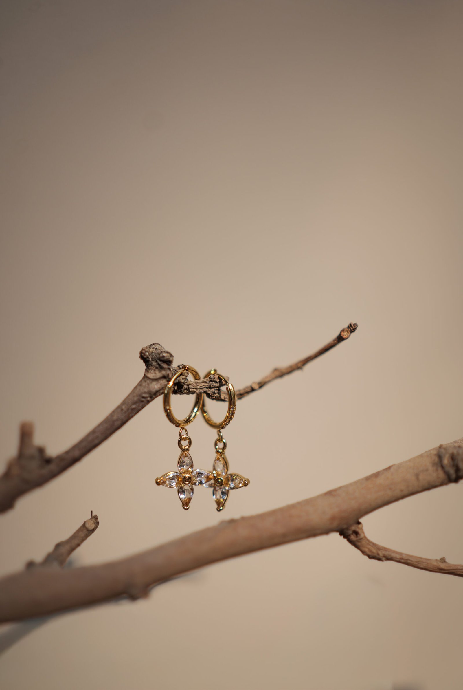 Be the first to review “Anti-Tarnish Gold Hoop Earrings with Crystal Flower Charm”