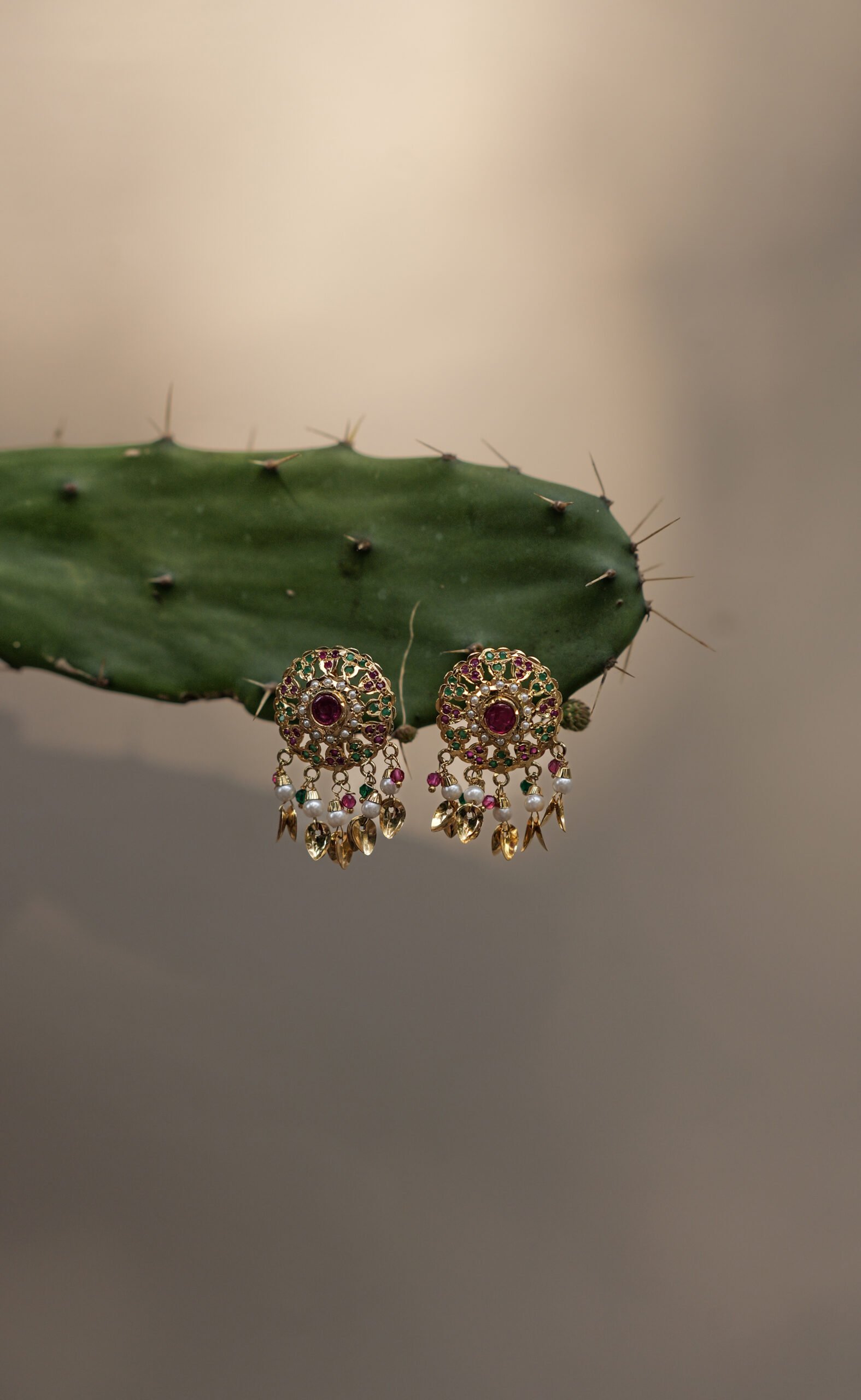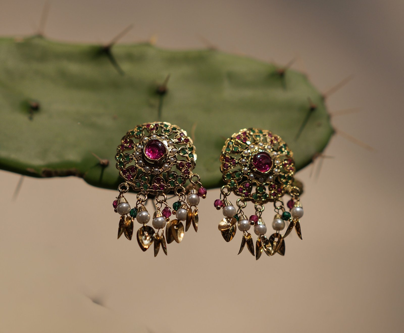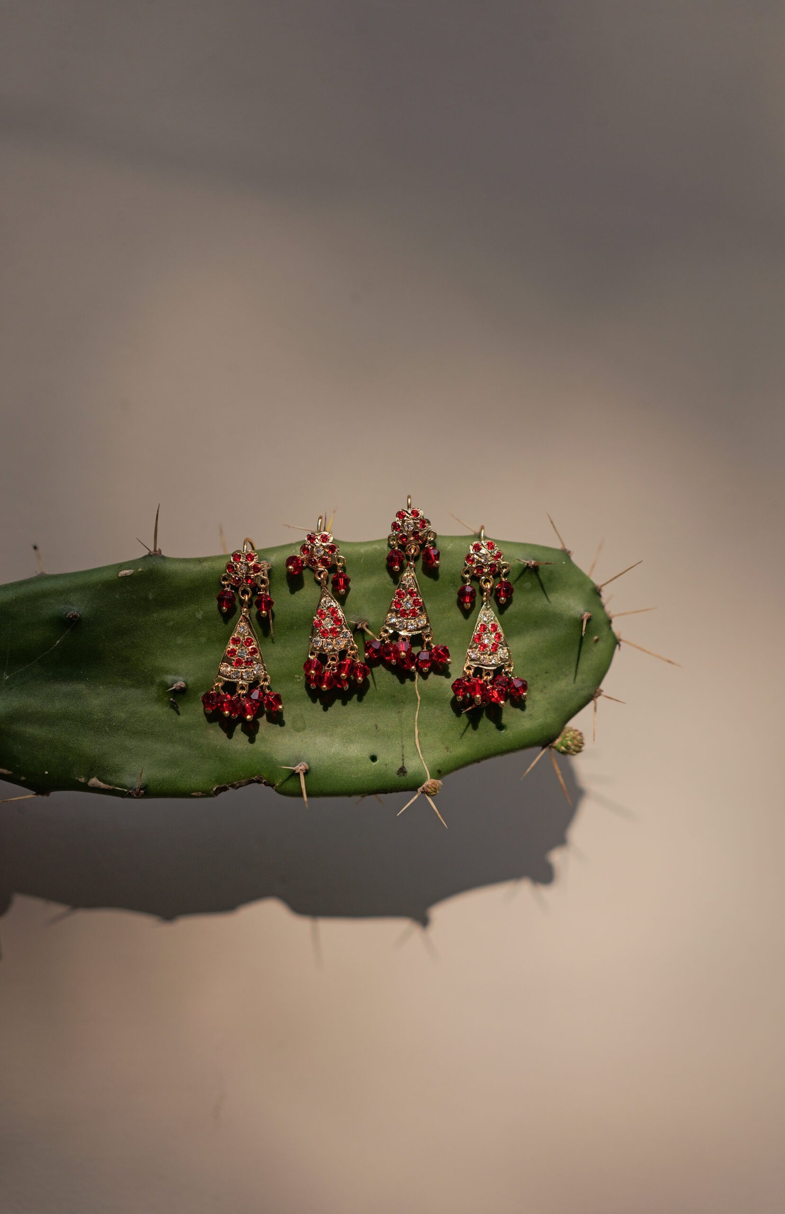 Add a royal touch to your jewellery collection with these elegant Chamba Gold Polish Rani Colour Tops. Inspired by traditional Himachali craftsmanship, these tops feature a rich rani (deep pink) stone setting beautifully enhanced with a luxurious gold polish finish.