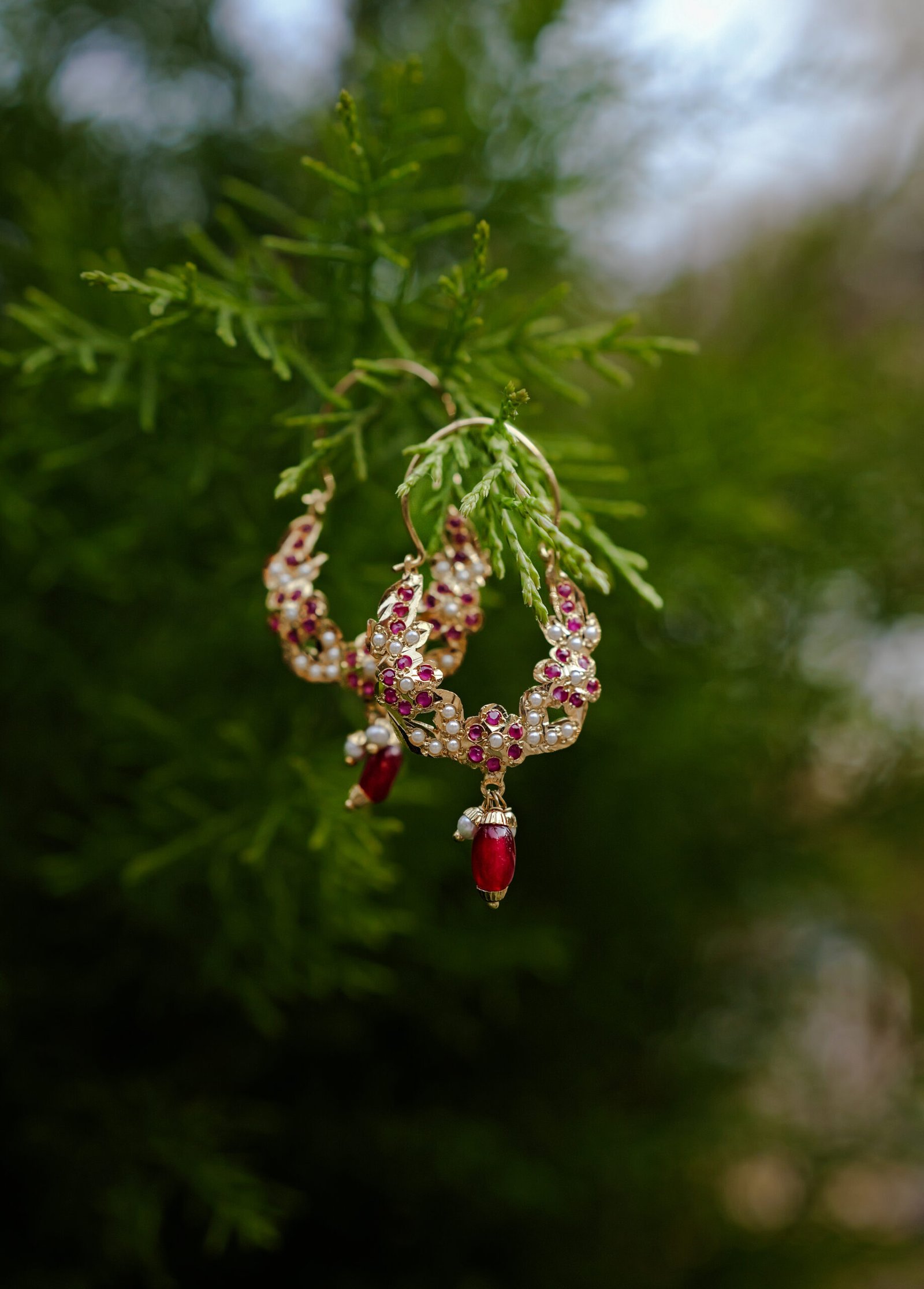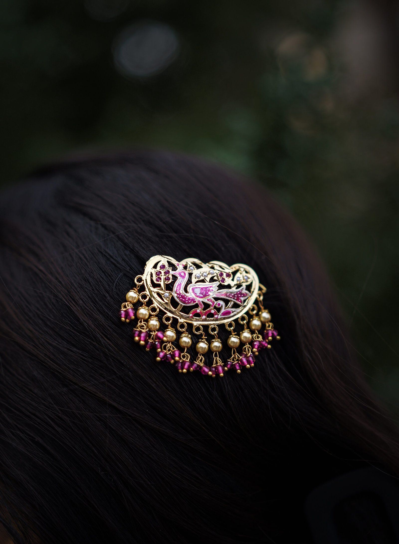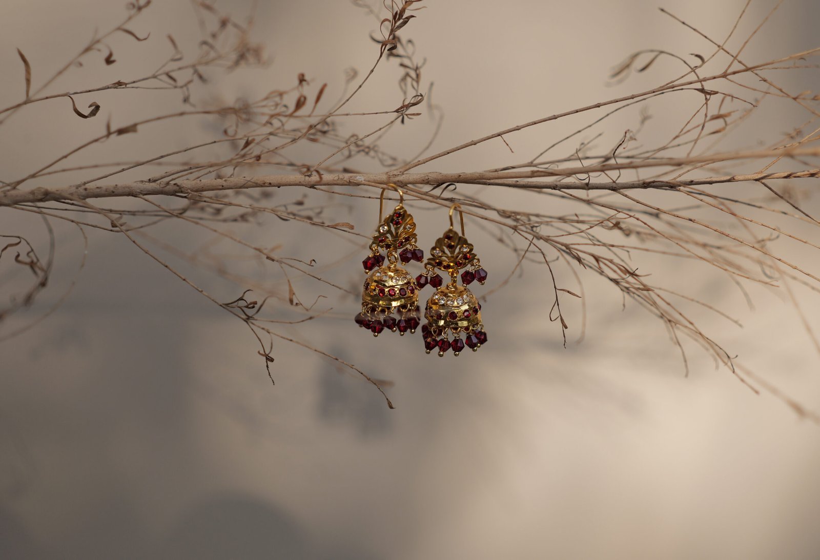 Add a royal touch to your jewellery collection with these elegant Chamba Gold Polish Rani Colour Tops. Inspired by traditional Himachali craftsmanship, these tops feature a rich rani (deep pink) stone setting beautifully enhanced with a luxurious gold polish finish.