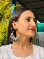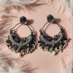 Inspired by timeless Mughal artistry, these Chand Bali earrings feature the iconic crescent moon silhouette that symbolizes beauty and elegance. Intricately designed with delicate detailing, shimmering stones, and graceful pearl drops, they create a regal statement with every movement.