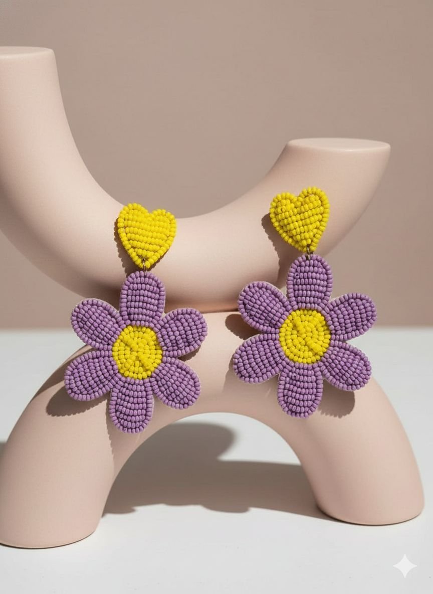 Bright, cheerful, and beautifully handcrafted — these Purple Yellow Beads Flower Earrings are designed to add a fresh pop of color to your look. Made with carefully arranged beads in a delicate floral pattern, they bring a playful yet elegant vibe to any outfit.