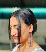 Celebrate color and tradition with the Rangriti Multicolor Butterfly Drop Earrings. Designed with beautifully detailed butterfly motifs in vibrant shades of red, blue, and teal, these earrings bring a perfect blend of ethnic charm and artistic elegance. The antique silver-tone finish enhances their vintage appeal, while the delicate ghungroo beads at the bottom add graceful movement and a subtle traditional touch.