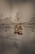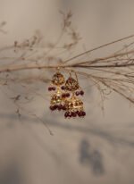 Jadau Jhumki are traditional Indian small bell-shaped dangling earrings crafted in the classic Jadau jewellery style. They feature intricate stone setting and detailed gold polish work, giving them a royal and heritage-inspired look.